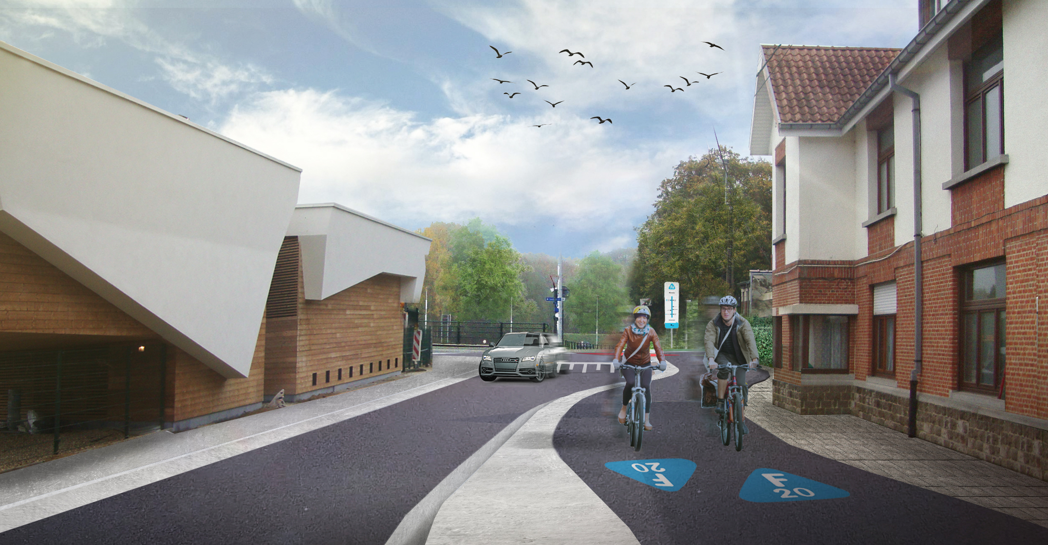 De voorrang van de fietsers op het gemotoriseerd verkeer wordt binnenkort verzekerd door middel van dynamische verkeerslichten met een detectiesysteem. Wanneer er een fietser aankomt, krijgen de auto’s rood ter hoogte van de oversteek. Deze rode lichten worden dit najaar geplaatst. Ook het voetpad langs de zijde van het kanaal moet nog afgewerkt worden.