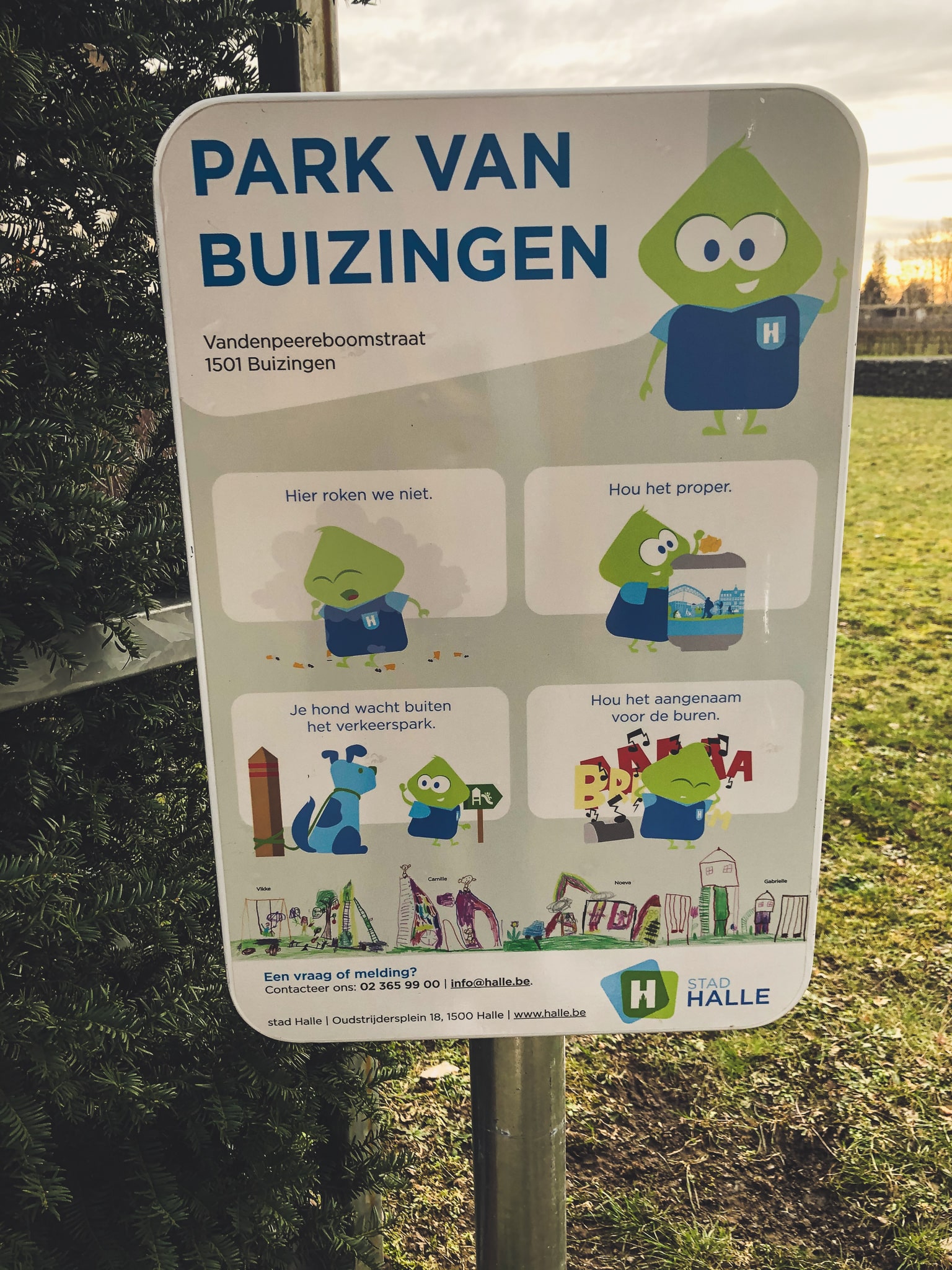 Dit park is gelegen nabij het centrum van Buizingen en strekt zich uit tussen een fietspad langs de spoorweg, het Gemeenteplein en de Vandenpeereboomstraat.
