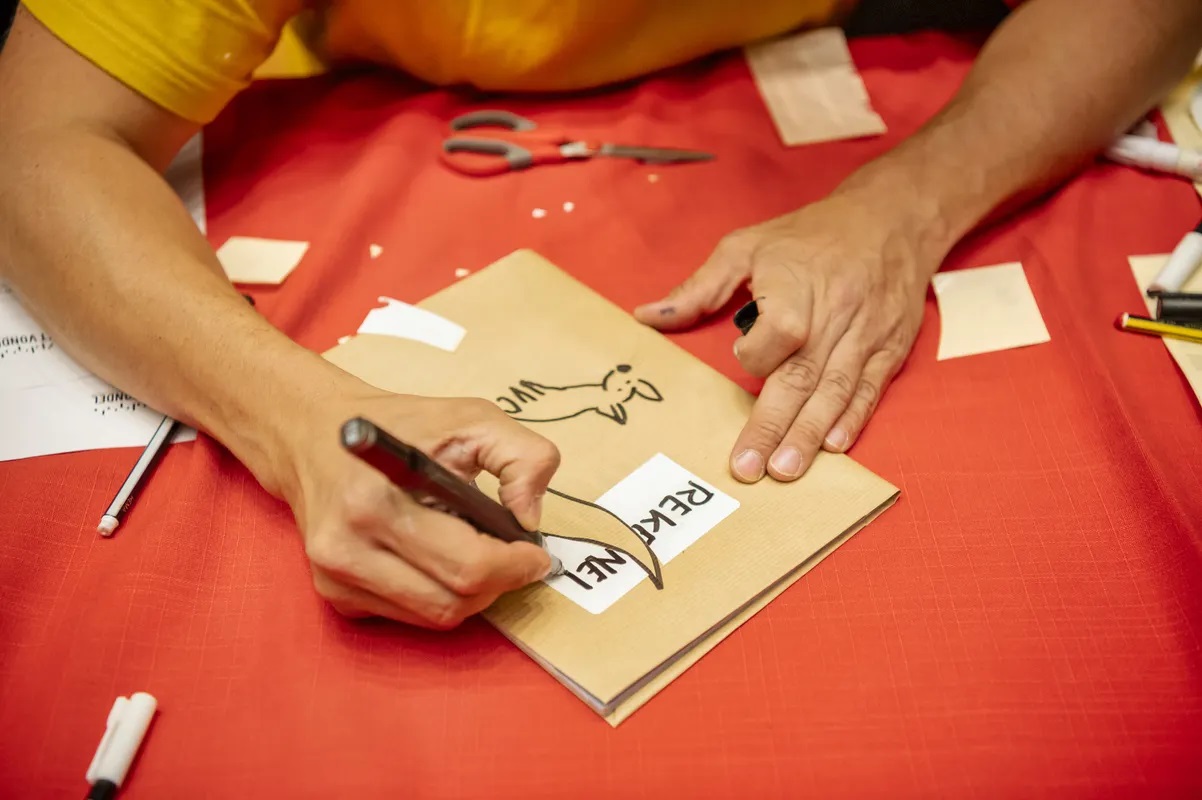Dit jaar tekenen illustrator en patroonontwerper Ema Tudose en strip- en cartoonist Matthias Cruyssaert live. Ze brengen verhalen, cartoons en patronen tot leven terwijl jij je boeken kaft.