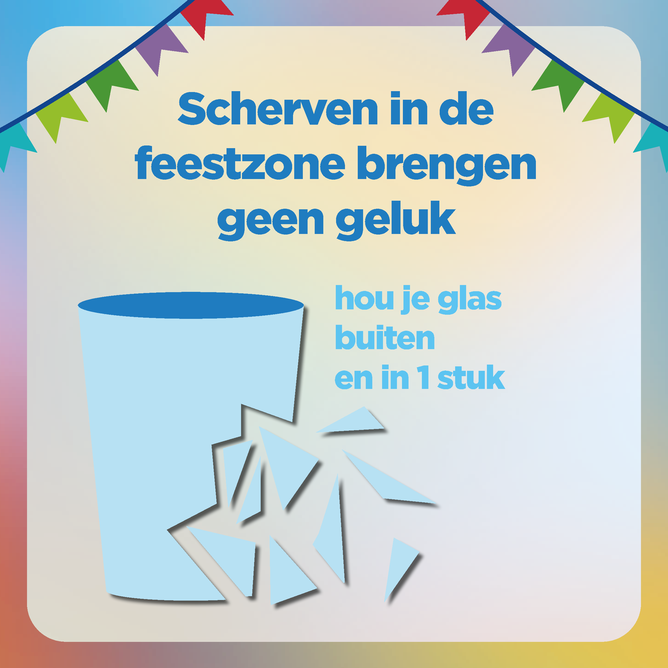 We verpakken 11 preventieboodschappen in leuke slogans en grappige ontwerpen. Van ‘Fris aan de vis? Met laagjes loopt het niet mis’ tot ‘Helemaal gaar? Slaap in uw bed in plaats van op ’t trottoir’… De feestvierders krijgen zo met een knipoog belangrijke tips mee.